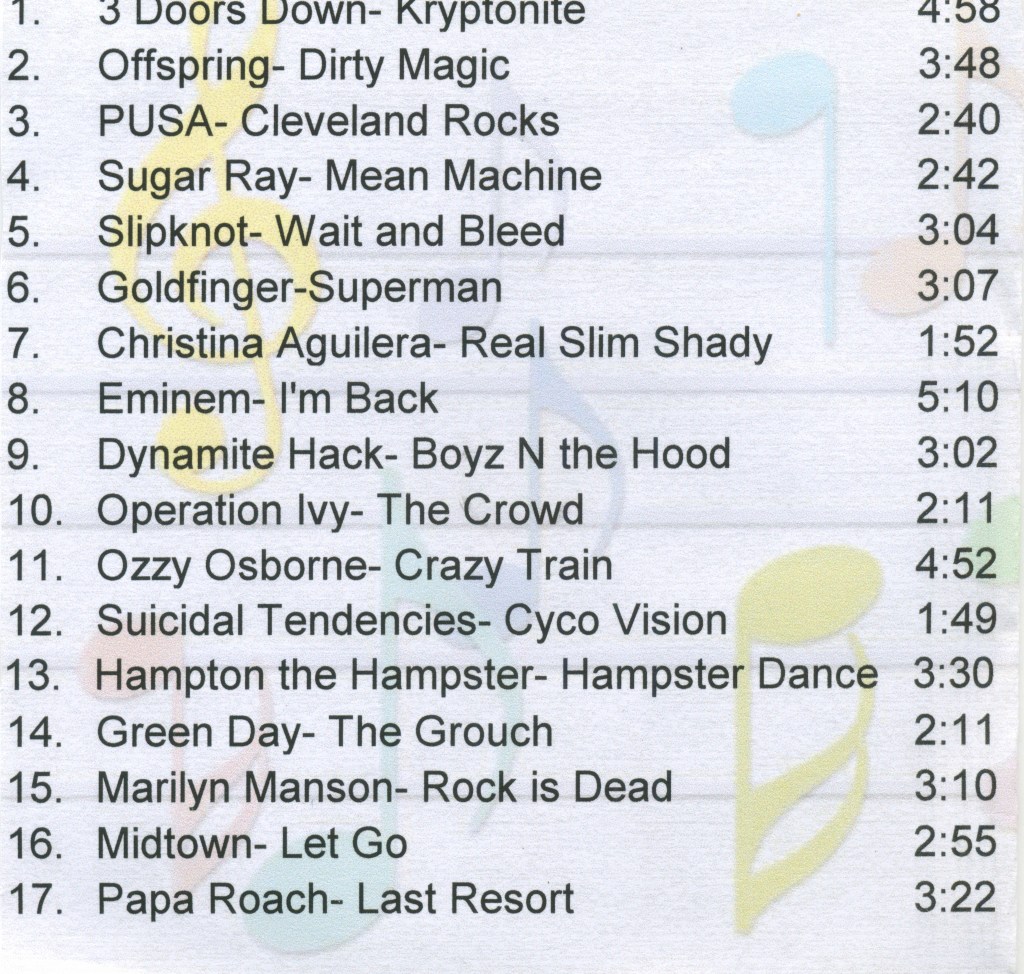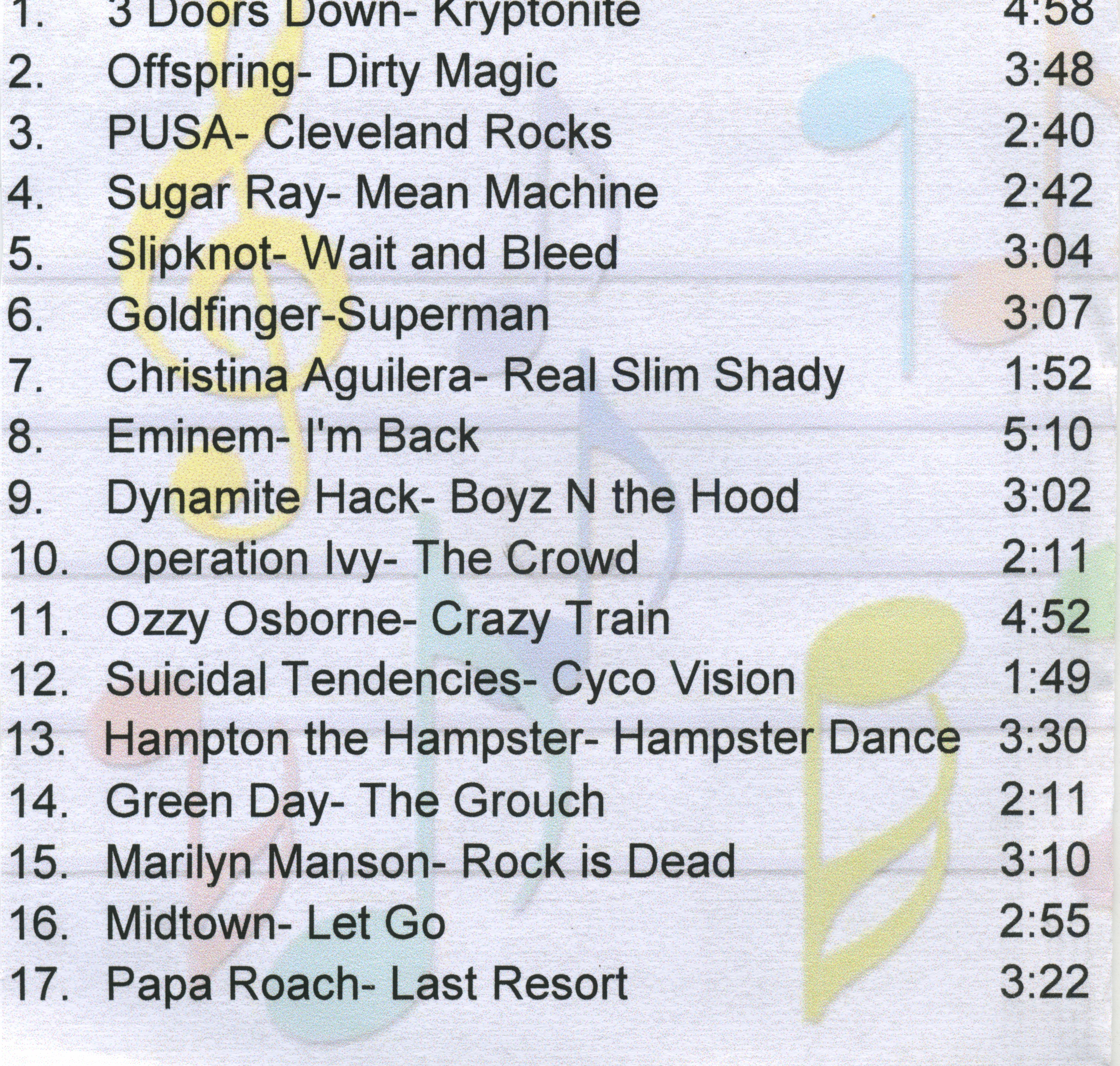 The buffer period of the discovery of a CD burner and actually receiving one was about six months. When Sam showed up at my house with Chunkorama in July of 2000, from then until the holidays I spoke of nothing else besides having a CD burner. I had seen how Sam would just throw songs from his Napster collection in a semi-calculated order, designed some bad Nintendo based artwork, and how it would lead to hours of entertainment from us sitting around listening to it and learning the songs. Because of Chunkorama, and my newfound ability to download ANY FUCKING SONG I WANTED, I was a little overwhelmed in the beginning. Some of my choices were leftover from my days of dredging the internet for songs I could never hear in full. Back then, I relied on CDnow.com and their 30 second samples they offered of every song known to mankind. Other choices were in direct response to my cousin, and Chunkorama. A few tracks were from the Tony Hawk’s Pro Skater soundtrack, which took up every weekend of my life during the last months of 6th grade. The radio still played an integral part in how we got music, and I was still grasping the fact I never had to tape another song again.